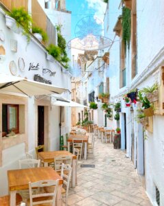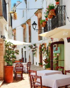 When you enter the historic center of Locorotondo, you arrive at the charming little square Piazza Vittorio Emanuele. Here, you’ll find several cozy bars and shops.