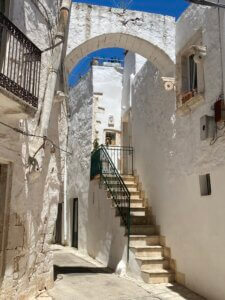 De huizen zijn hier net zo wit en fotogeniek als in Ostuni, maar het is hier veel minder druk en daardoor doet het allemaal wat authentieker aan. Je wandelt hier nog vrij ongestoord rond en drinkt een caffè tussen de locals.