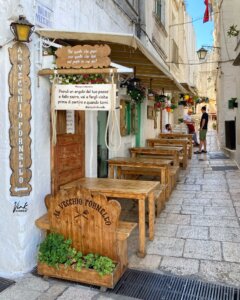 20M2 is een populaire bar / restaurant in het historische centrum van Cisternino. Er heerst een relaxe, gezellige sfeer. De bar zit verscholen in een klein straatje waar enkele zitplaatsen zijn en een schommel! Op het pleintje hebben ze ook een restaurant waar je hippe en lekkere gerechten kan eten. Ideaal voor de lunch maar ook diner.