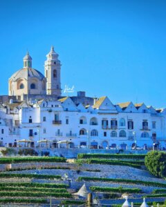 Ook wordt het wel eens ‘het balkon van de valle d’Itria’ genoemd. Waarom deze naam? Omdat Locorotondo een prachtig uitzicht heeft vooral vanuit de Giardini Pubblici, het stadspark, met zover je kunt kijken een lappendeken van trulli in het groene landschap met stenen muurtjes, zilverkleurige olijfbomen, oude masseria’s en wijngaarden.