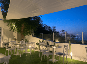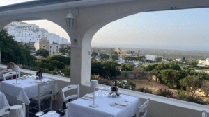 De naam betekent “het oude terras”, passend want het restaurant heeft een ruim terras met mooi uitzicht, zowel over de zee als over de oude stad van Ostuni.
